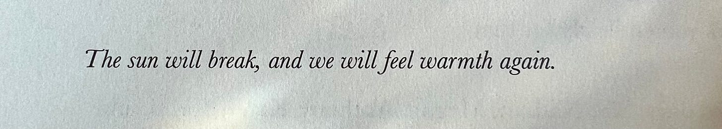 Sunbreak: Notes on Hope is out in the world now. It is no longer just mine; I can no longer hover over the delete button. So instead, this morning, in seat 23F at 35,000 feet, I hover over the publish button of this newsletter and say—