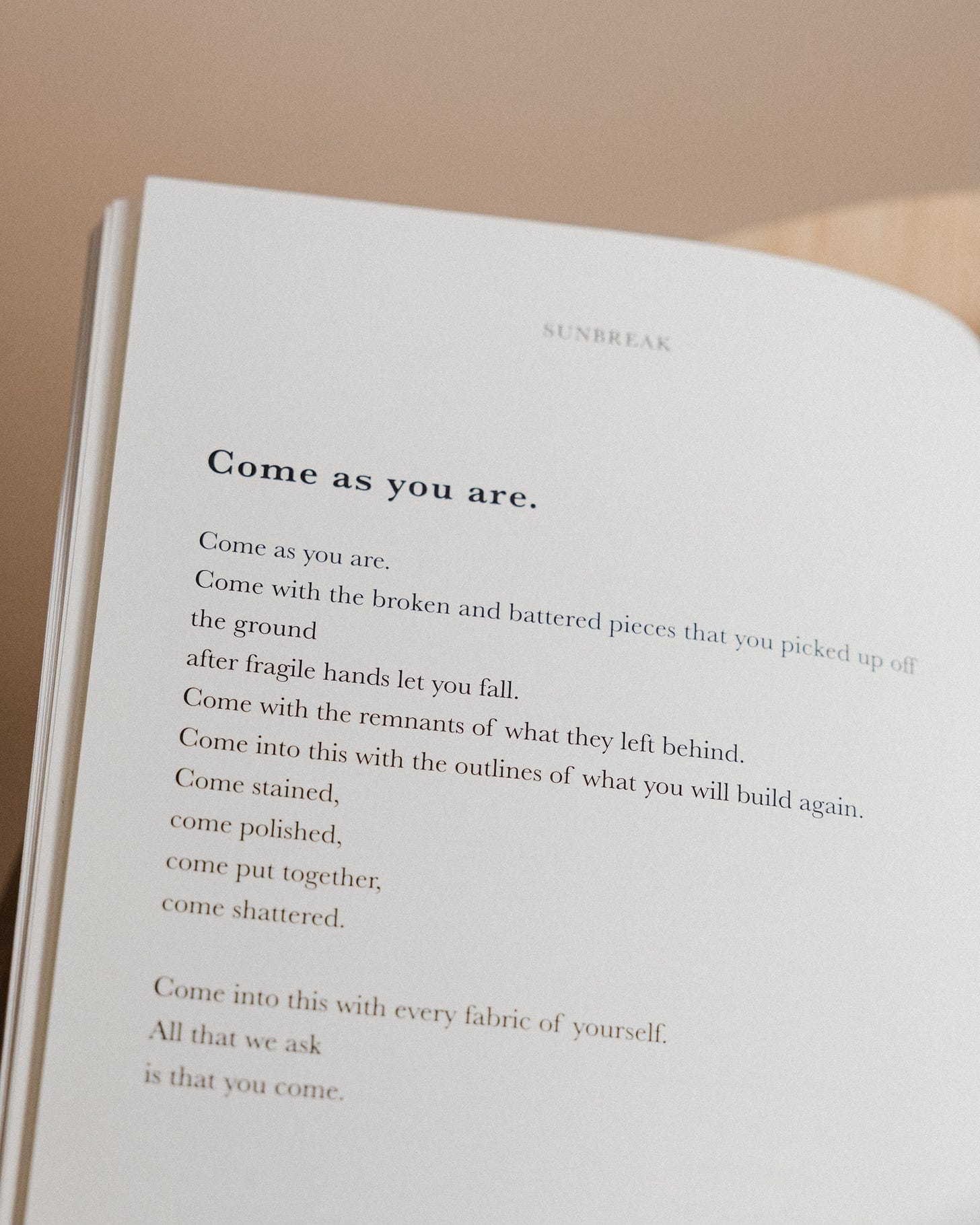 In a world as burned and bruised as ours, we have no other option but to hold Hope closely. Sunbreak is a collection of poems and short essays on what I believe is the aftermath of despair: Hope. It is undeniable that today we are facing countless reasons to lose hope—war, political corruption, climate change, food insecurity. The list goes on. And in such a world, it feels like the last thing we should do is put our belief on the whims of some word like Hope. But I think it is important to highlight that in the face of all of this despair, both today and historically, humanity has come out on the other side. Not always immediately, but always eventually. And I think that is beautiful.